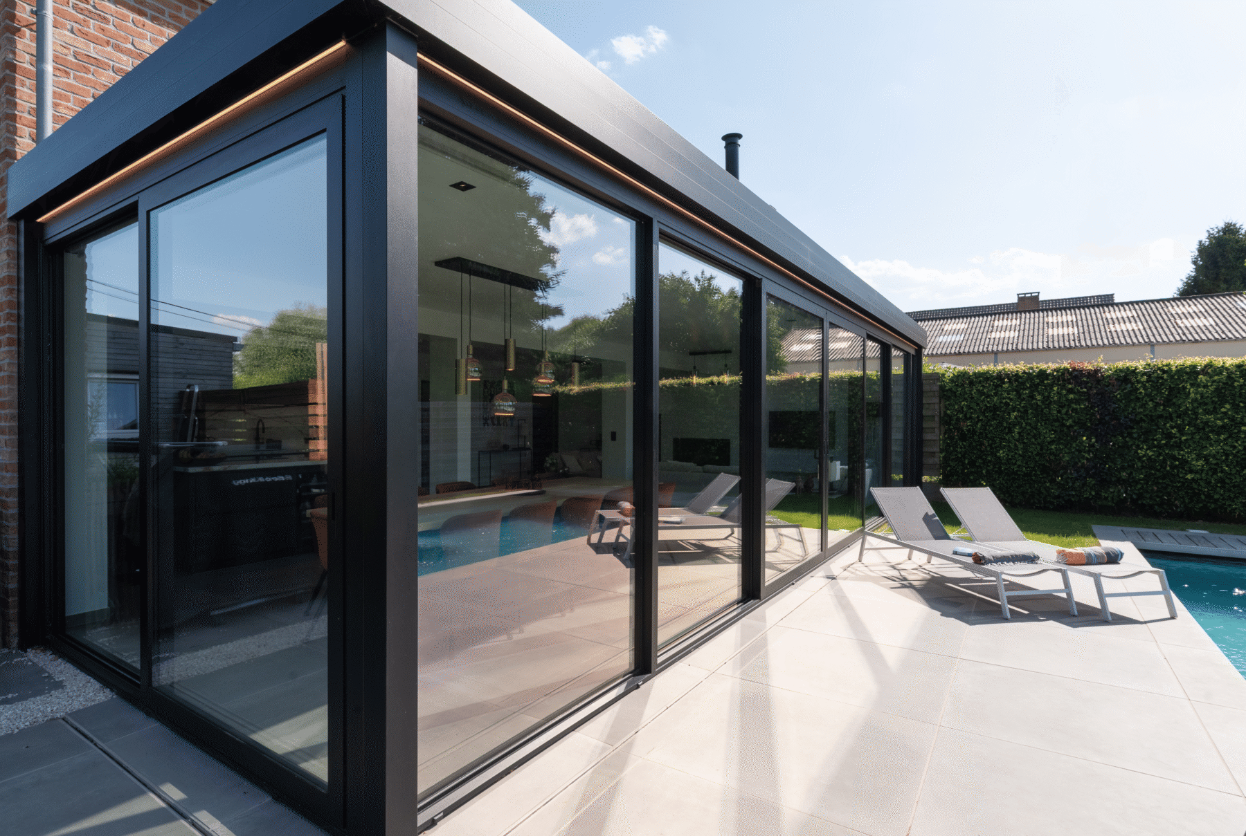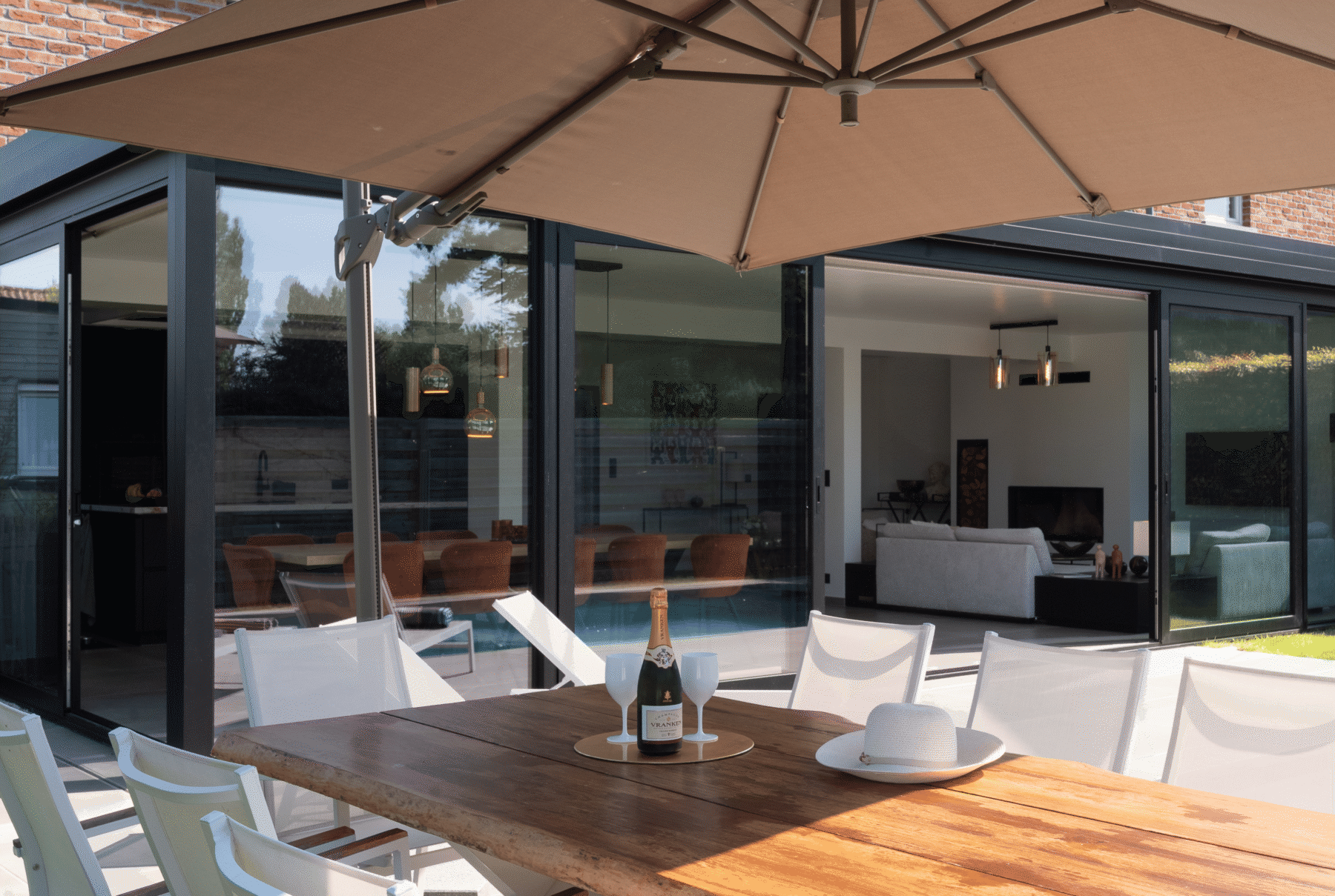 L'entreprise Van Der Bauwhede construit et installe des vérandas de tous styles, avec de nombreuses options telles que l'éclairage, le chauffage, des puits de lumière, etc.